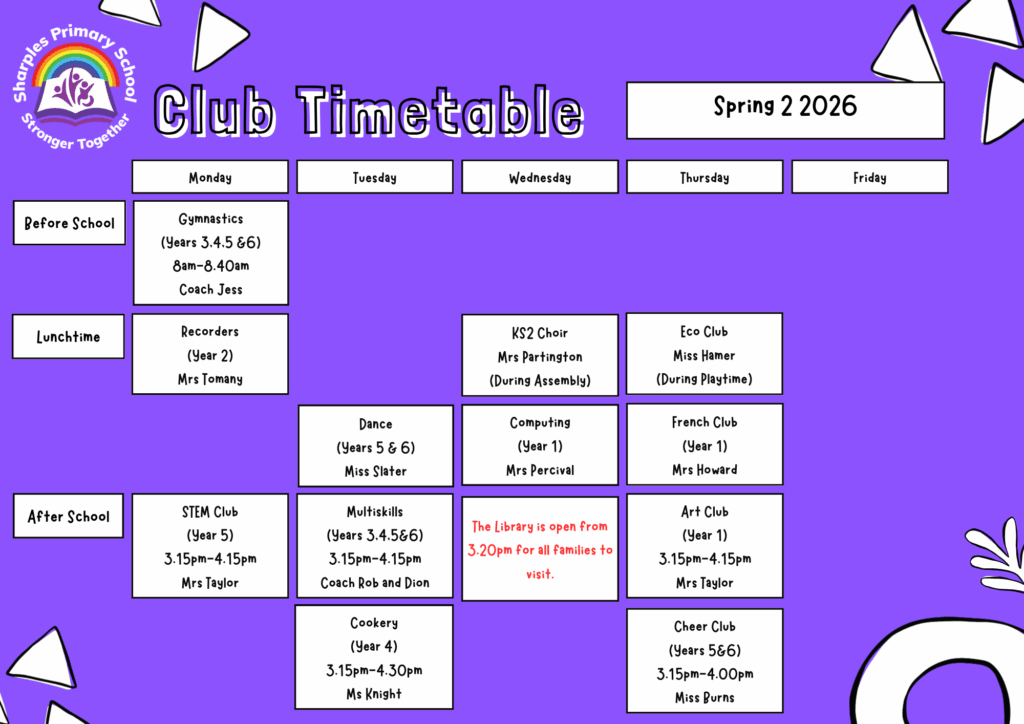 We offer a range of extra curricular clubs and opportunities for children to attend. These cover a range of interests and either take place during the school day, before school, at lunch or after school. If you wish to attend any of the clubs, please speak to your class teacher or the person leading the club.